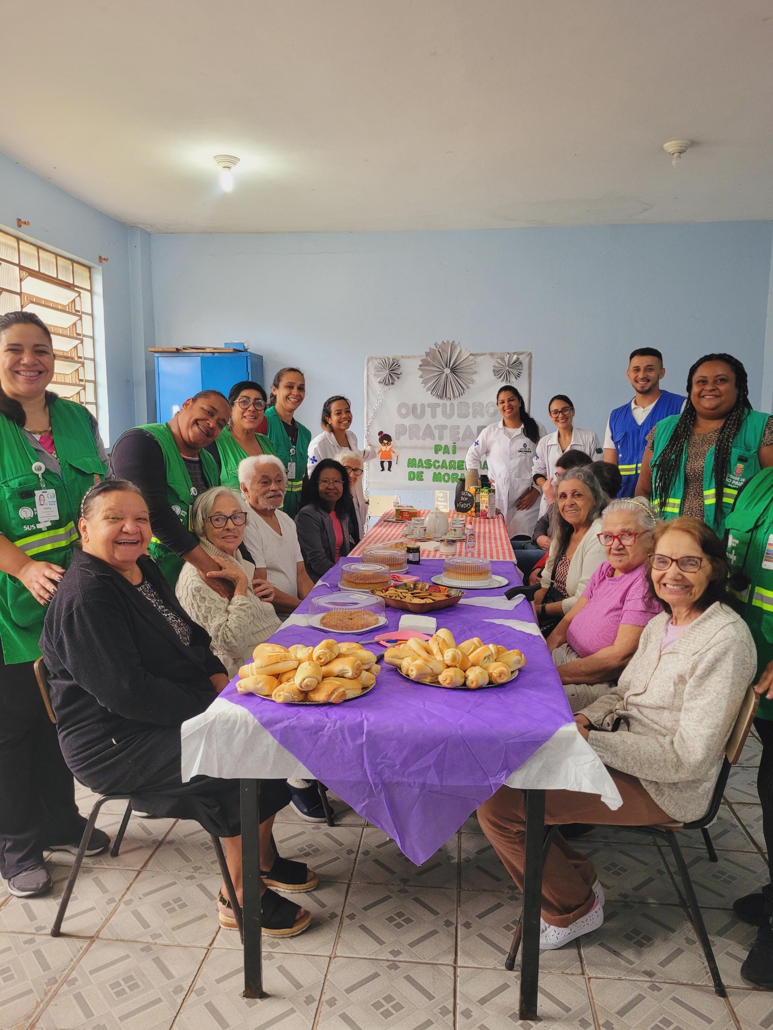 Ao final do encontro, a equipe ofereceu um café da manhã para os idosos, a fim de incentivar a interação social, a comunicação e a criação de conexões afetivas entre os participantes.
